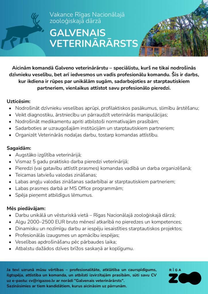 – Pieredze mazo dzīvnieku veterinārmedicīna, īpaši darbā ar kaķiem, priekšrocība būs pieredze darbam ar bezsaimnieku kaķiem
