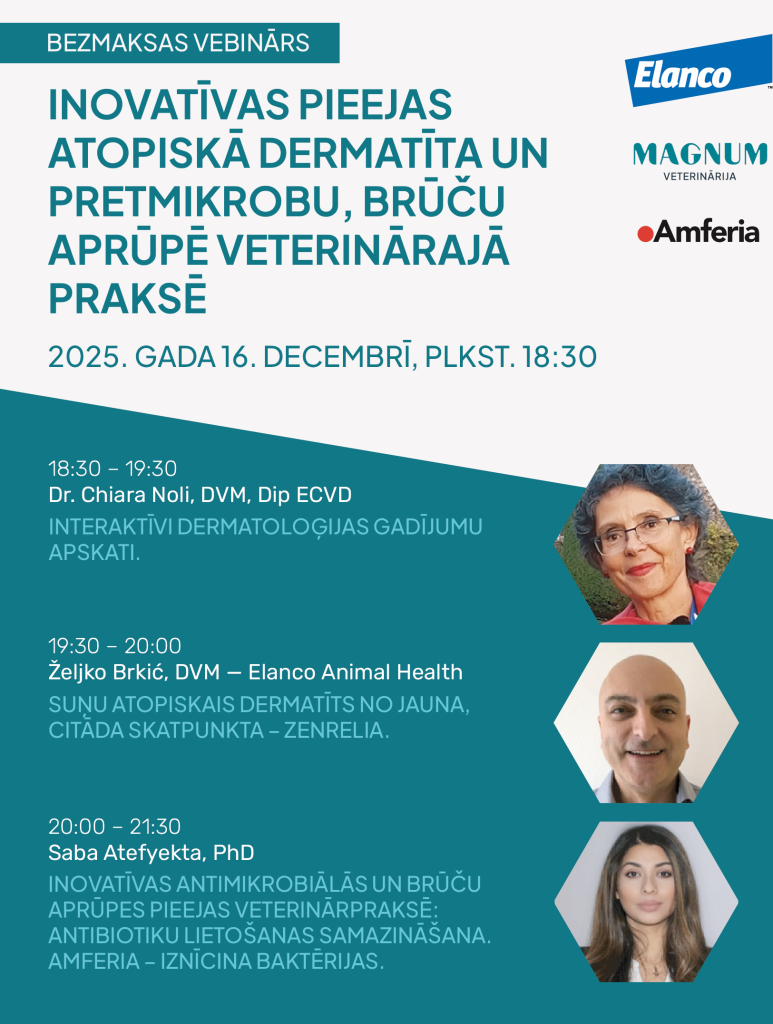 SIA “Magnum Veterinārija” aicina uz bezmaksas vebināru “Inovatīvas pieejas atopiskā dermatīta un pretmikrobu, brūču aprūpē veterinārajā praksē”