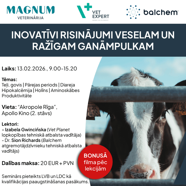 SIA “Magnum Veterinārija” aicina uz semināru “Inovatīvi risinājumi veselam un ražīgam ganāmpulkam”