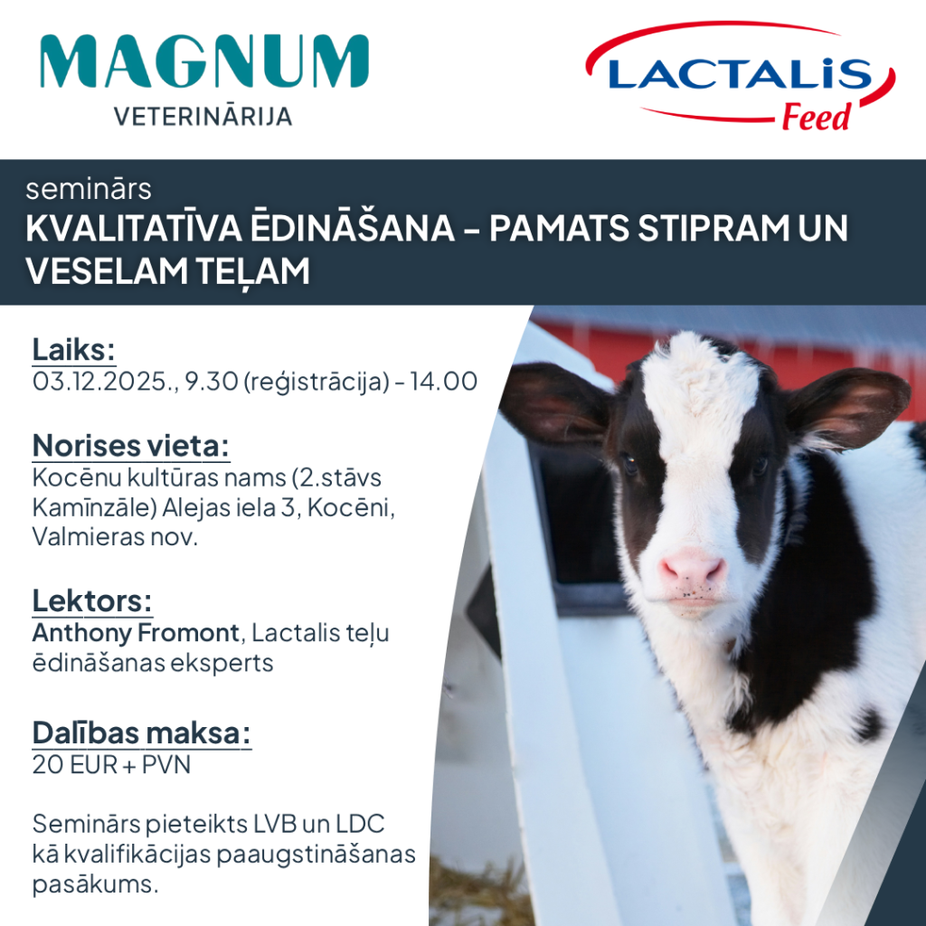 SIA “Magnum Veterinārija” aicina uz semināru “Kvalitatīva ēdināšana – pamats stipram un veselam teļam”