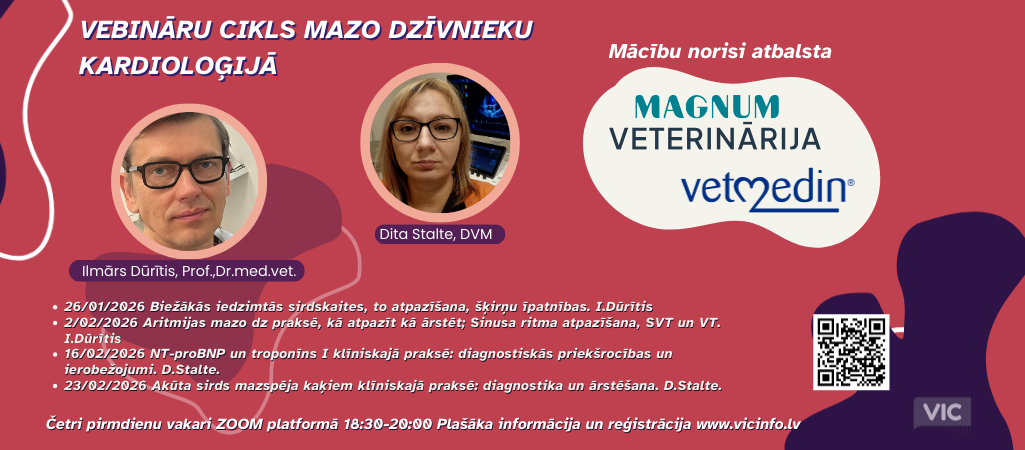 - 23.02.2026. Akūta sirds mazspēja kaķiem klīniskajā praksē: diagnostika un ārstēšana. D. Stalte